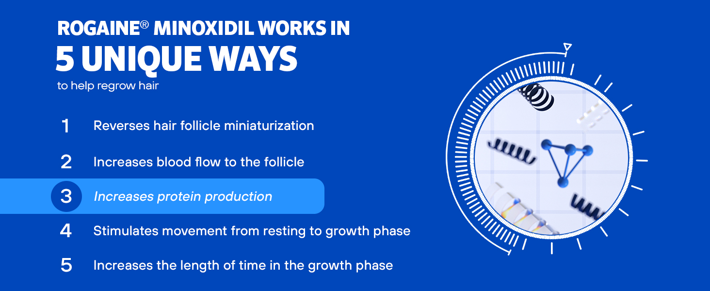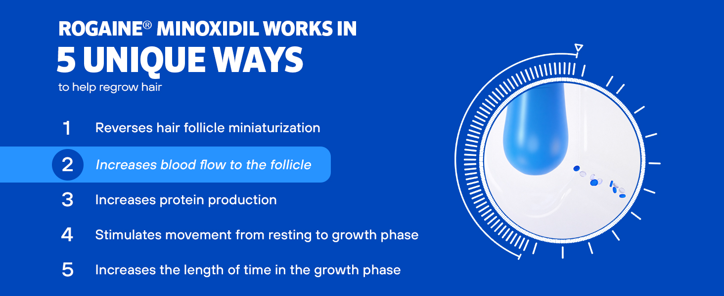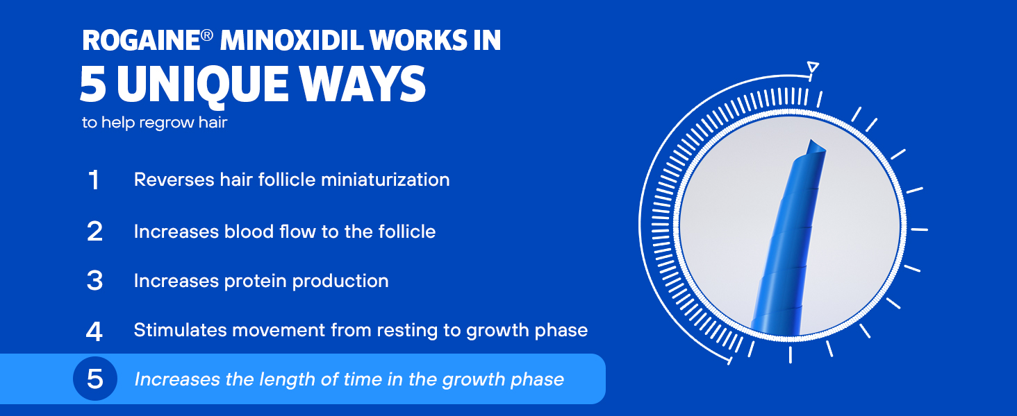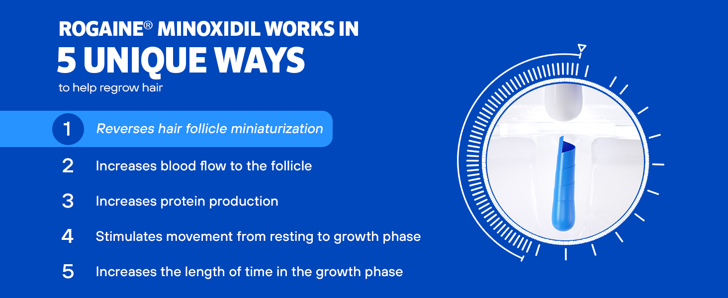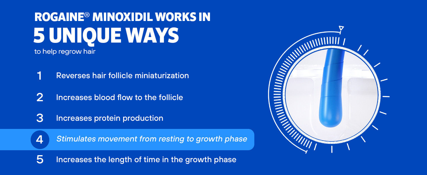 Minoxidil revives and increases the size of hair follicles and extends your hair’s natural growth cycle so you can regrow thicker, fuller hair.